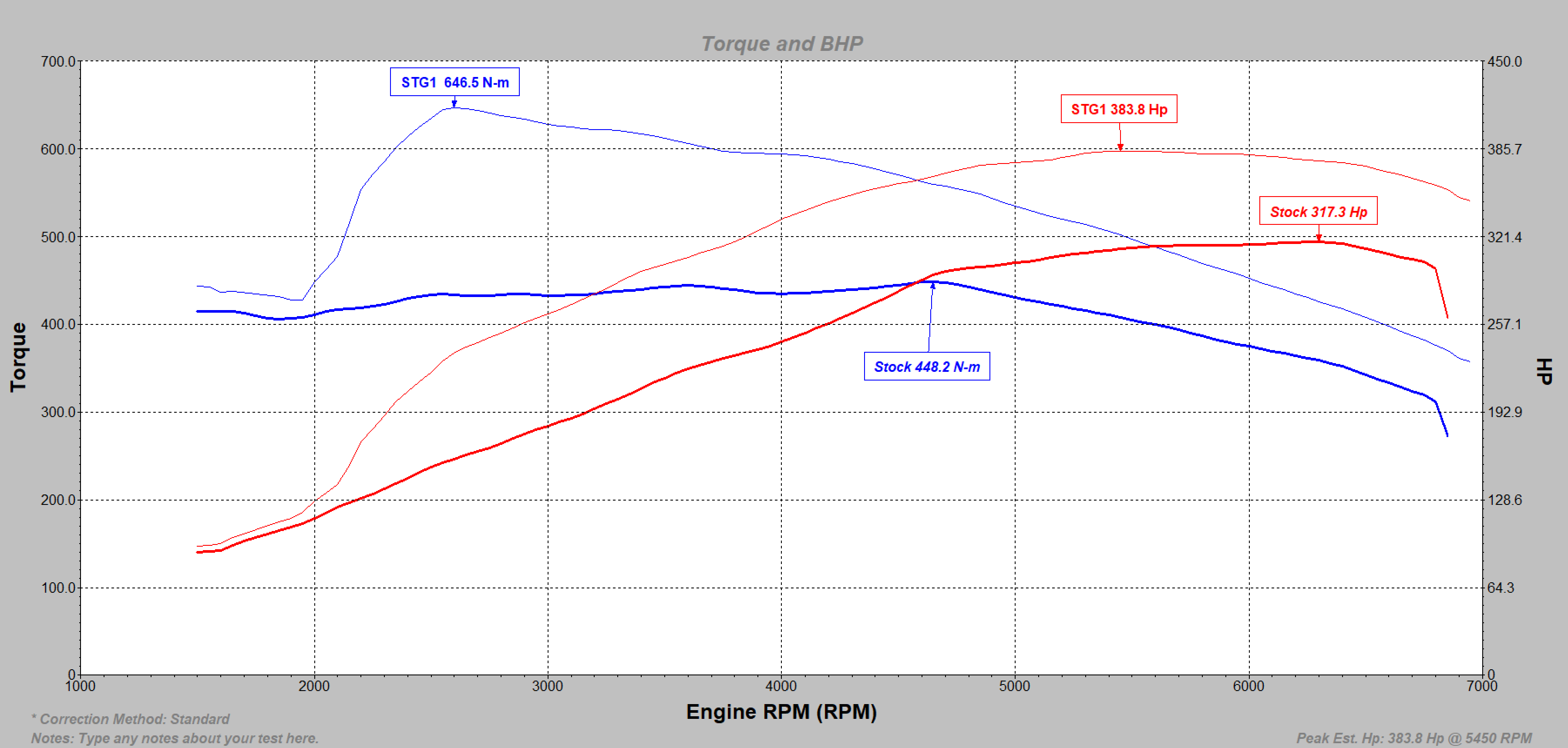 STG 1 Power increased to 380-400BHP and 620NM of torque when using 99 RON fuel.