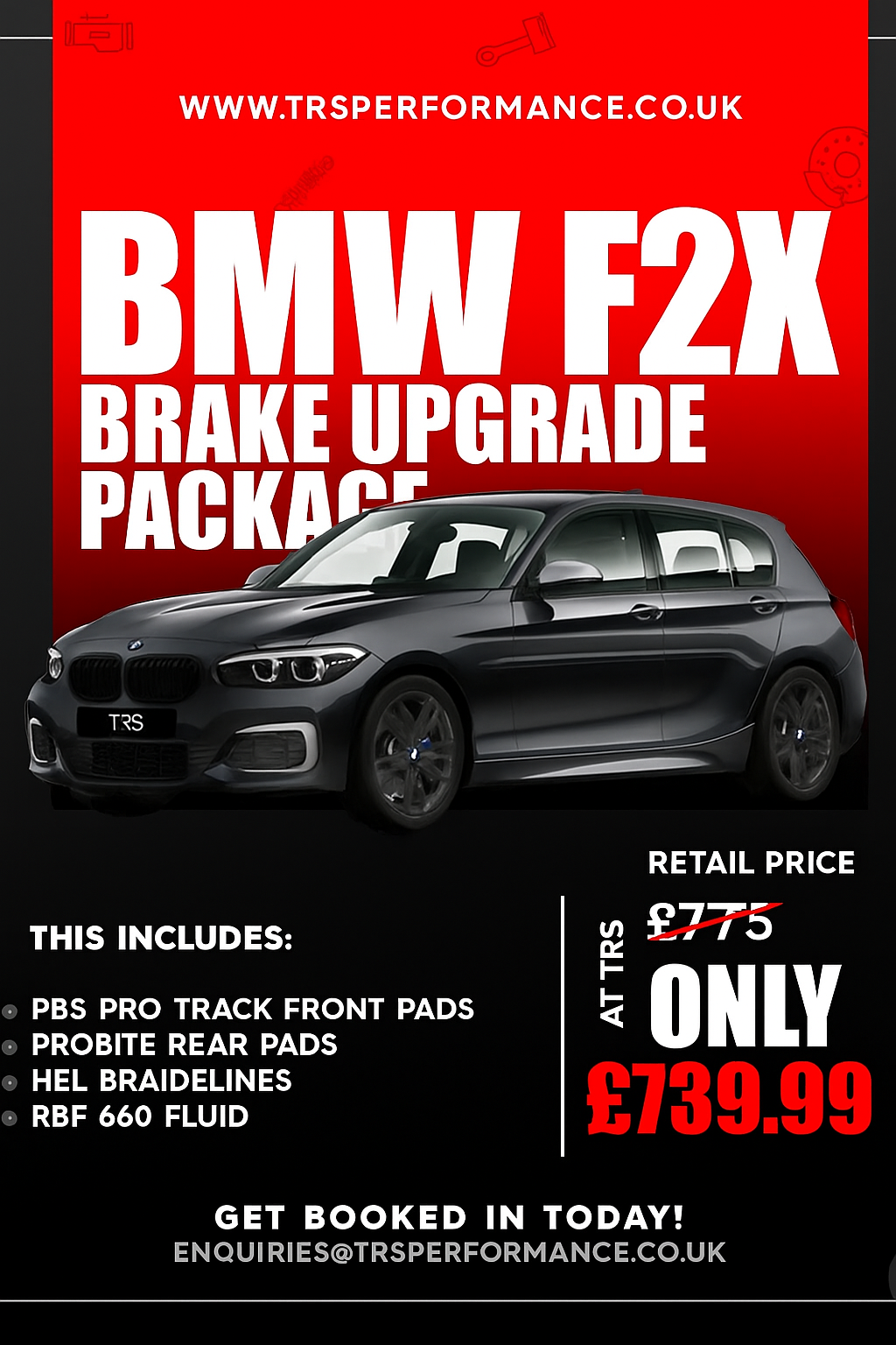 Take your BMW F2x braking performance to the next level with our TRS Performance Brake Upgrade Package. Designed for fast-road and track use, this setup delivers improved pedal feel, higher heat resistance, and fade-free stopping power when you need it most.