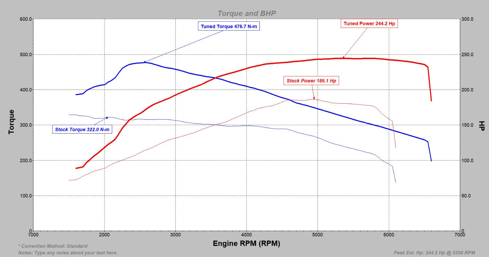STG 1 tuning will see upto 260BHP and 480Nm when using 99RON fuel.